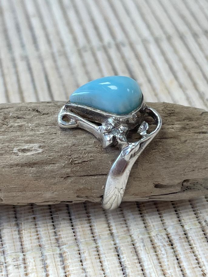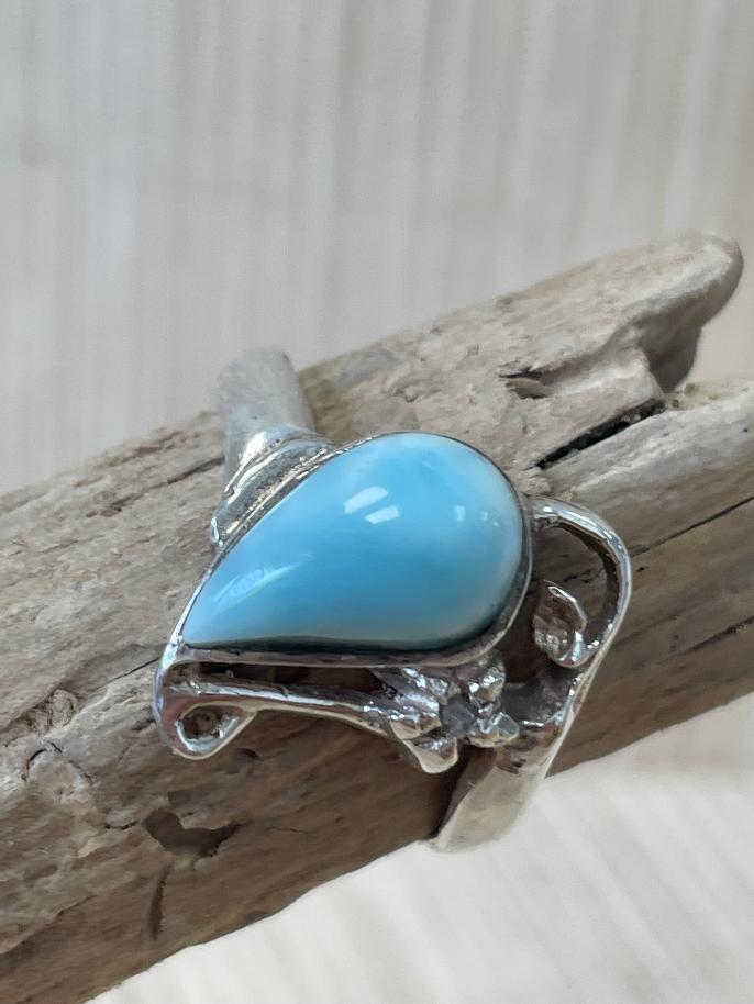 Le Larimar est à l’honneur chez Améthys’te, à Sainte Marie la Mer, bagues, pendentifs et boucles d’oreilles en argent.