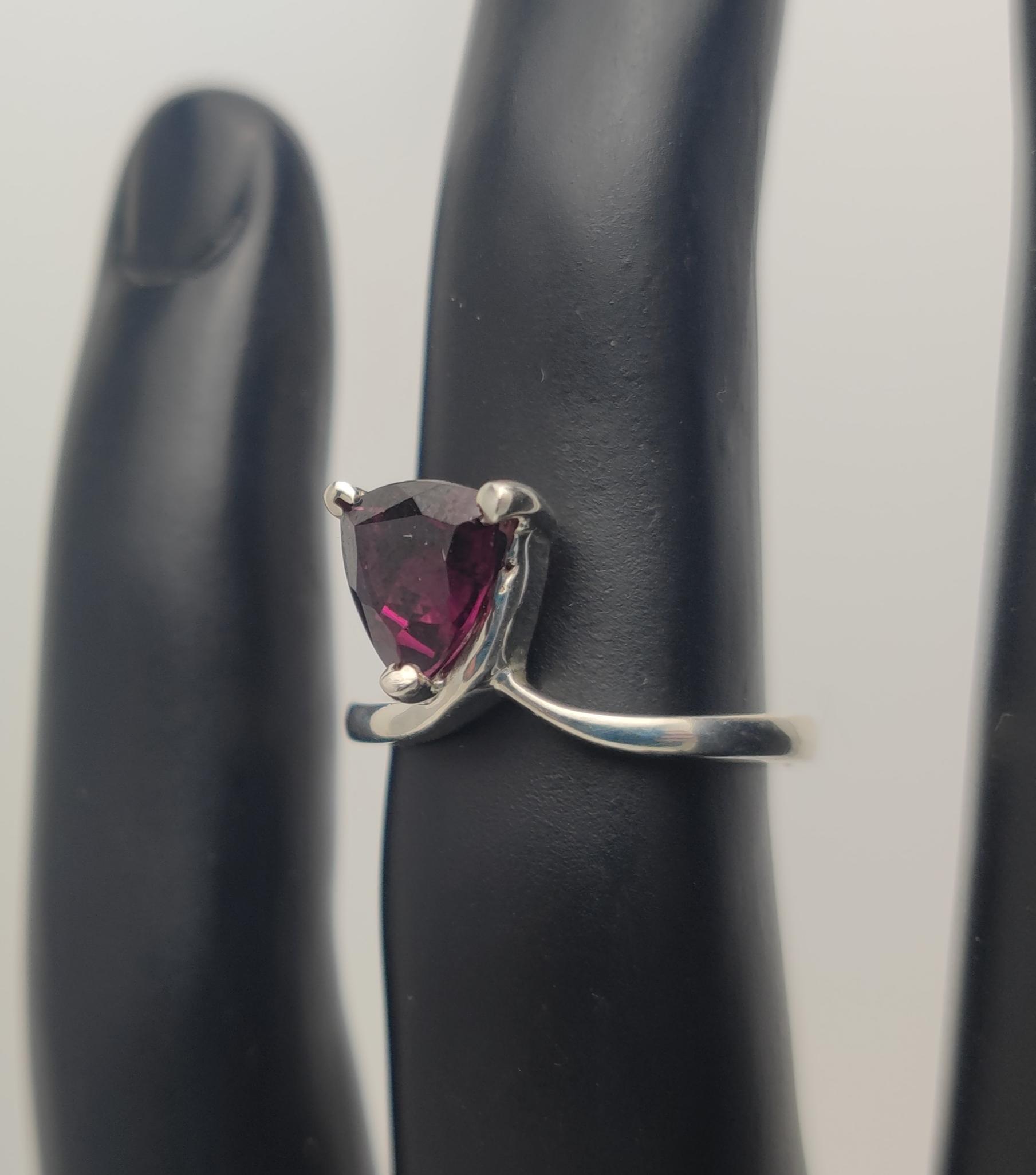 Bague en grenat de forme triangulaire.
