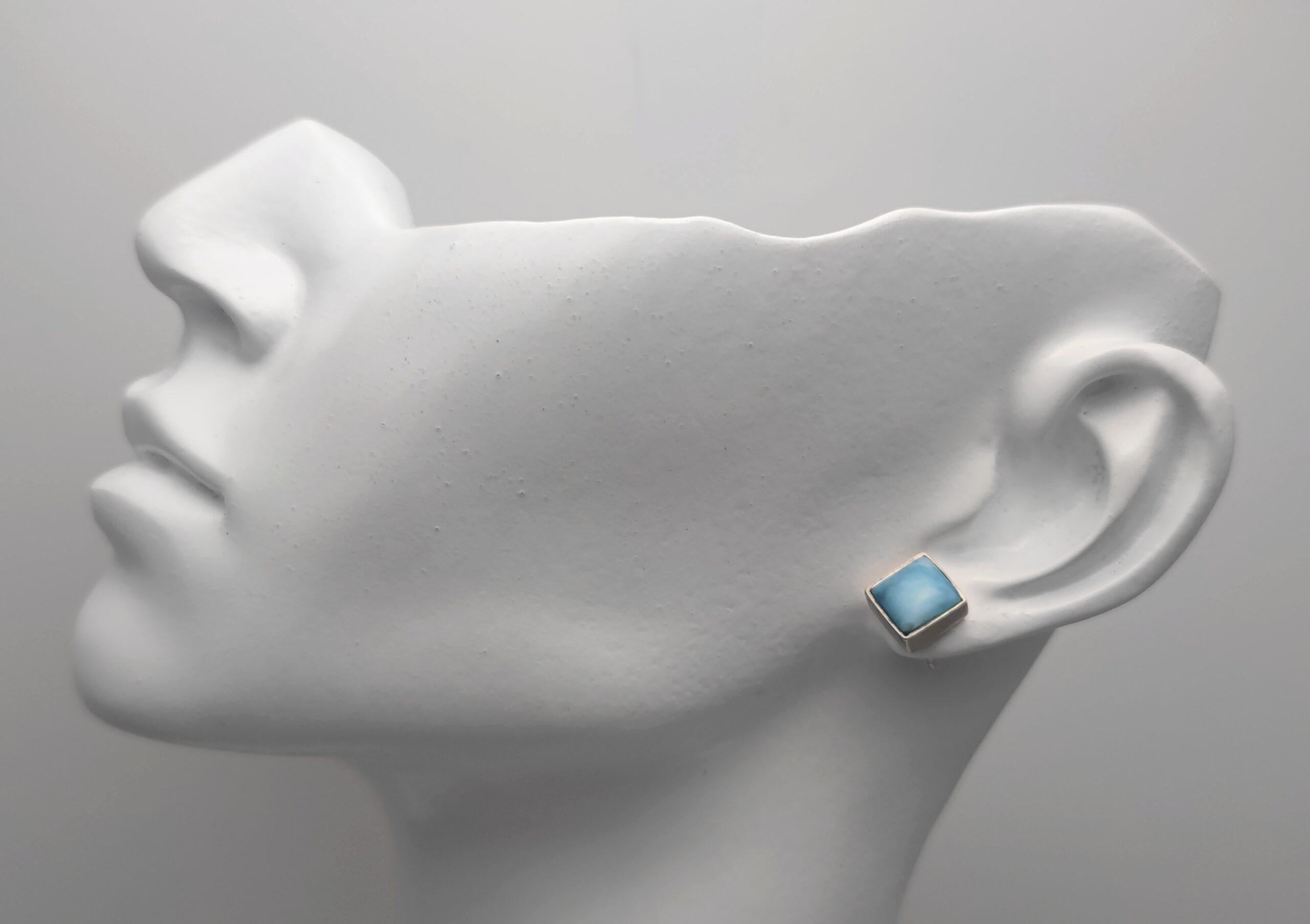 BOUCLES D’OREILLES CARRE LARIMAR ET ARGENT