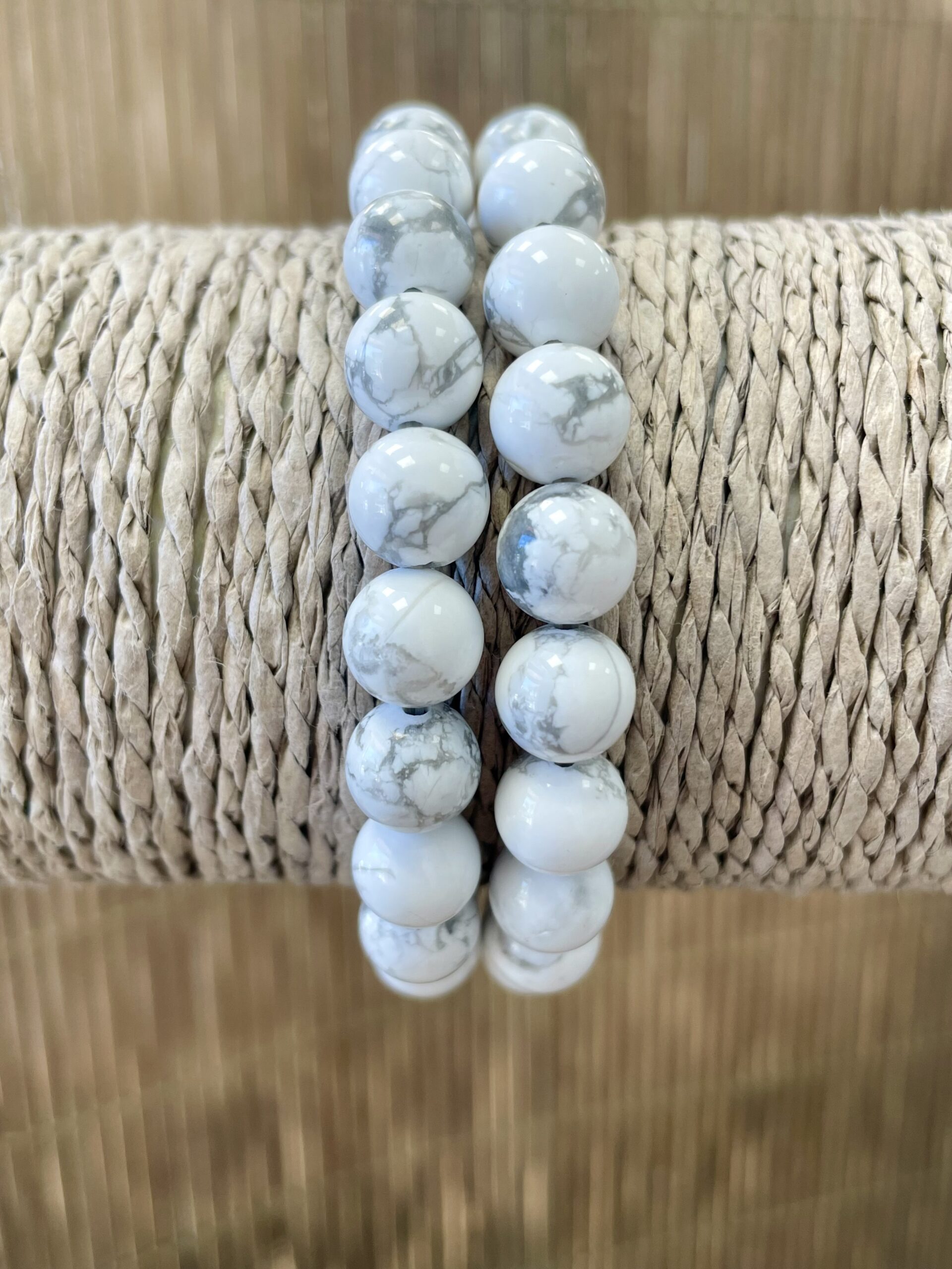 - Anti-stress naturel : La Howlite blanche est réputée pour calmer le mental, réduire l’anxiété et les tensions nerveuses. Elle aide à retrouver la sérénité, surtout en période de surmenage ou d’agitation émotionnelle. Porter ce bracelet au poignet permet de bénéficier de son énergie apaisante tout au long de la journée.
