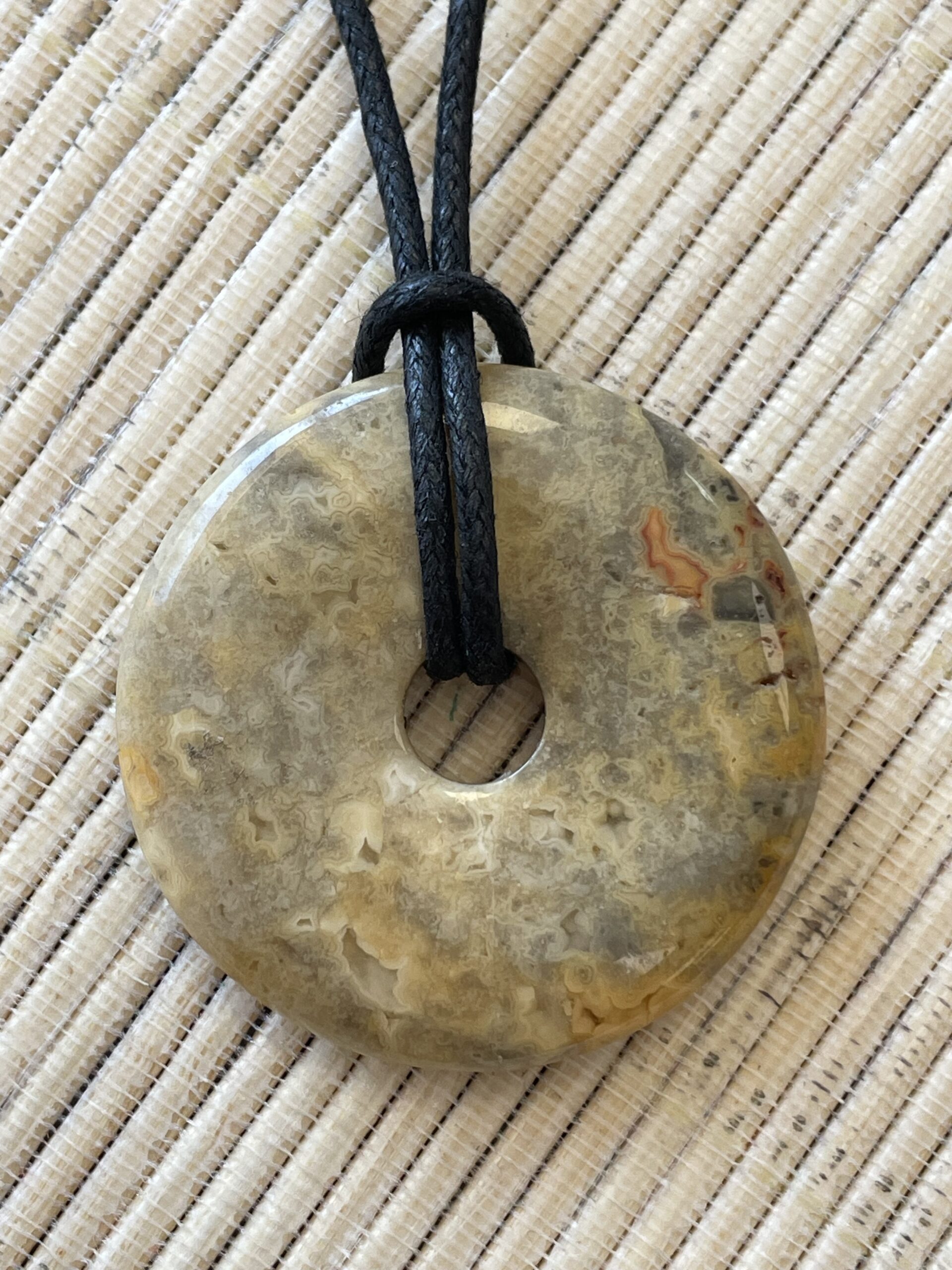 Les donuts (ou pi) en Agate Crazy Lace de 40 mm, portés en pendentif, sont des pierres naturelles très appréciées pour leur beauté et les vertus qui leur sont attribuées en lithothérapie. Voici ce qu’il faut savoir sur leurs propriétés et leur symbolique :