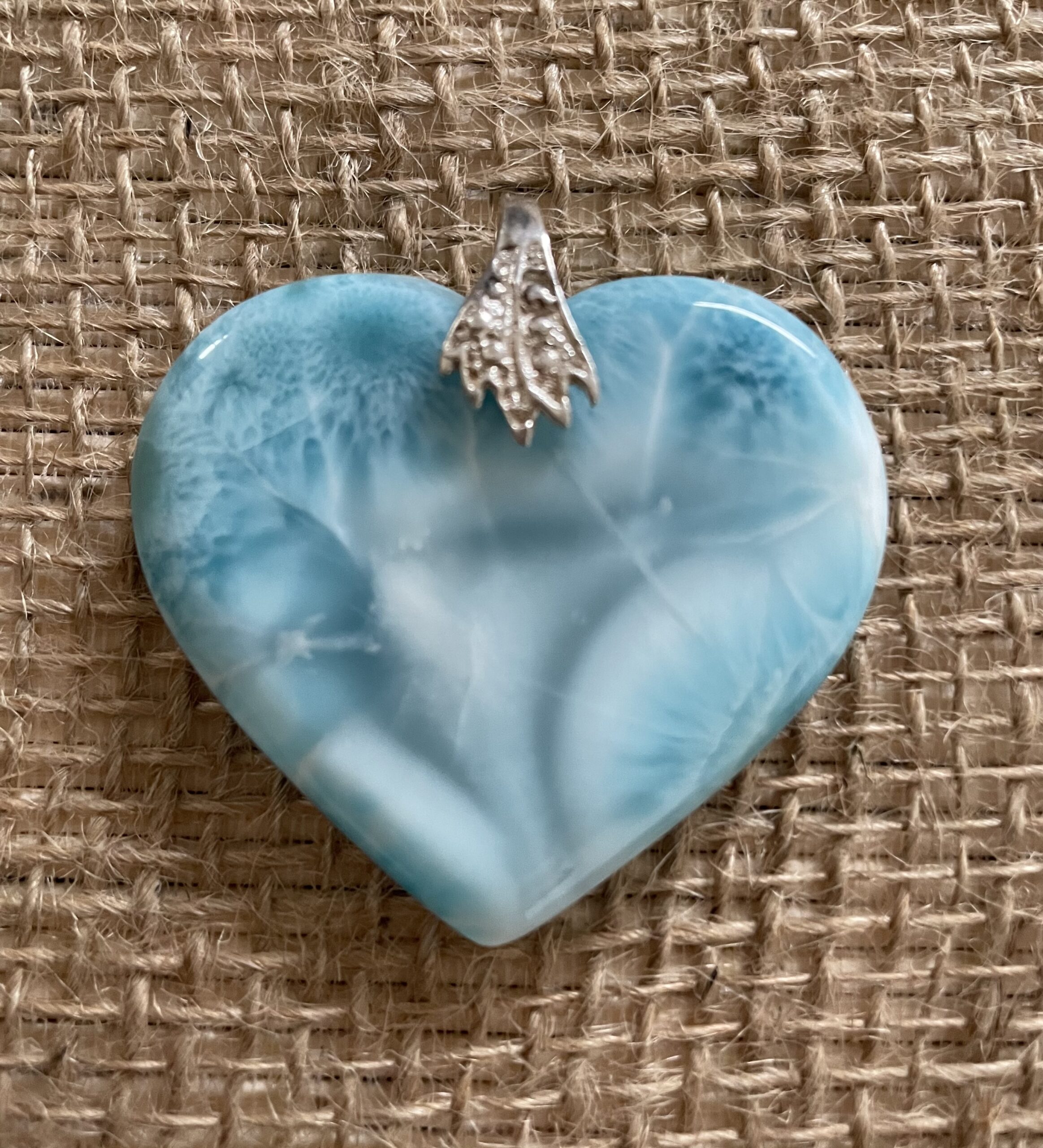 PENDENTIF LARIMAR AAA COEUR N°4 et ARGENT