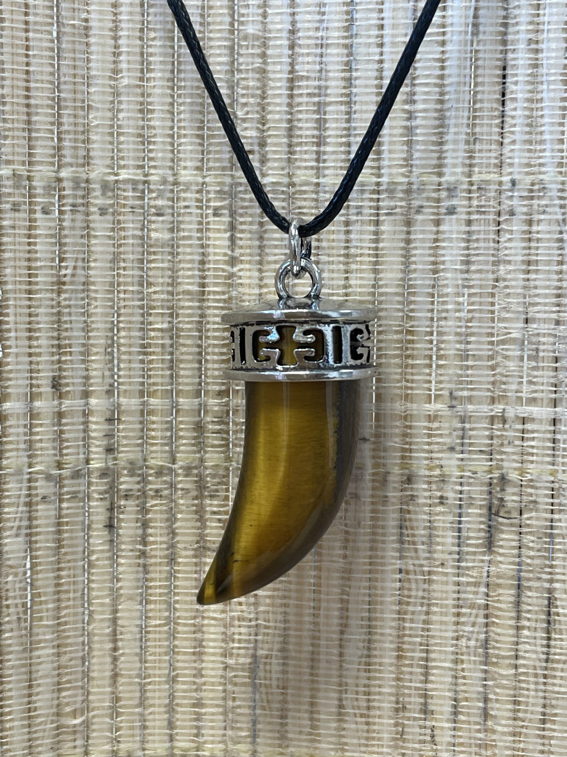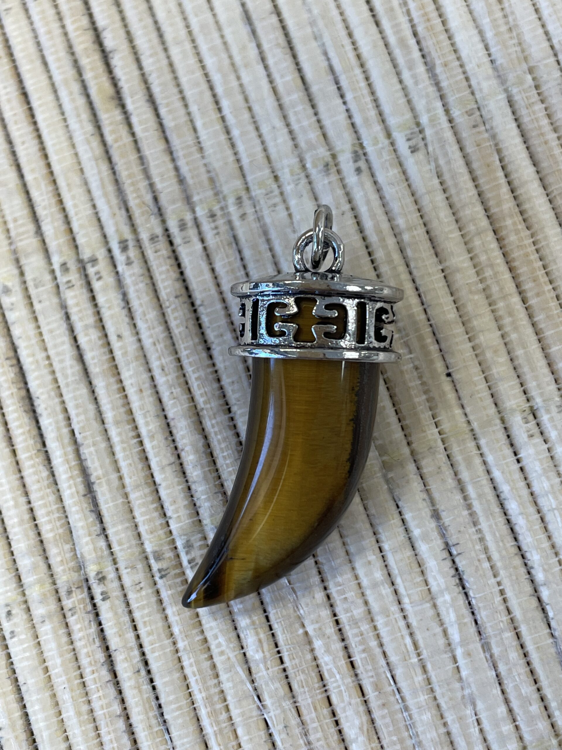 PENDENTIF OEIL DE TIGRE ACIER CORNE ACIER