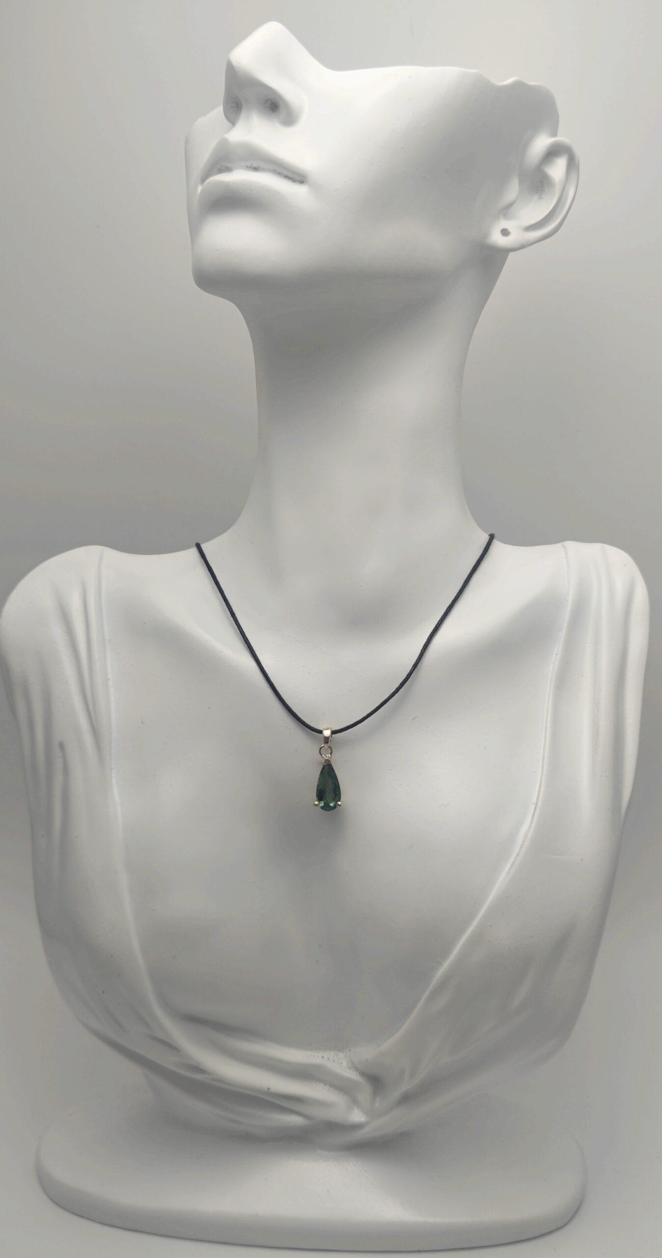 PENDENTIF TOURMALINE VERTE (VERDELITE) GOUTTE ARGENT